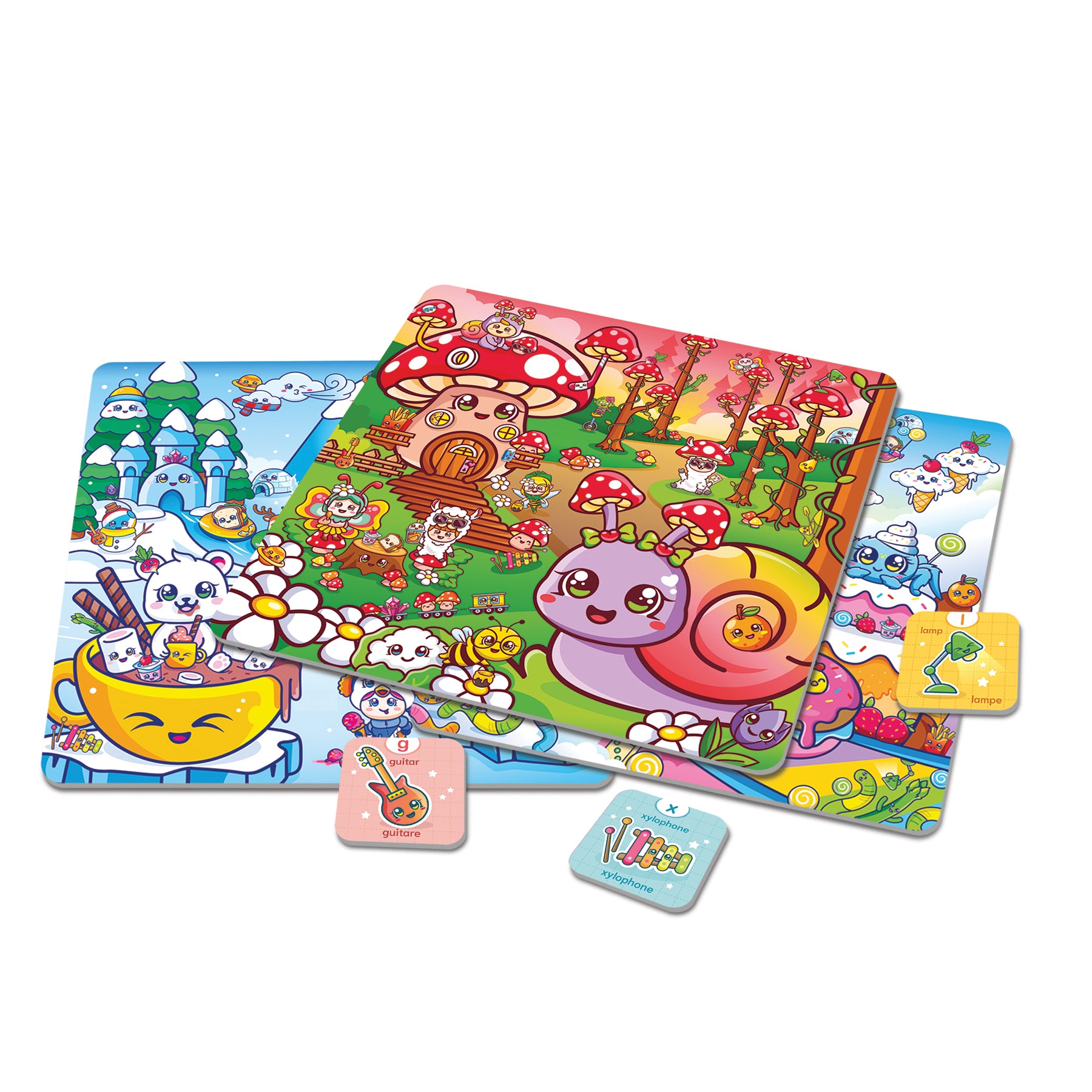 With 26 illustrated cards featuring funny, fanciful objects, children will have fun looking at, recognizing and learning the letters of the alphabet as they explore these fantastical and colourful worlds!