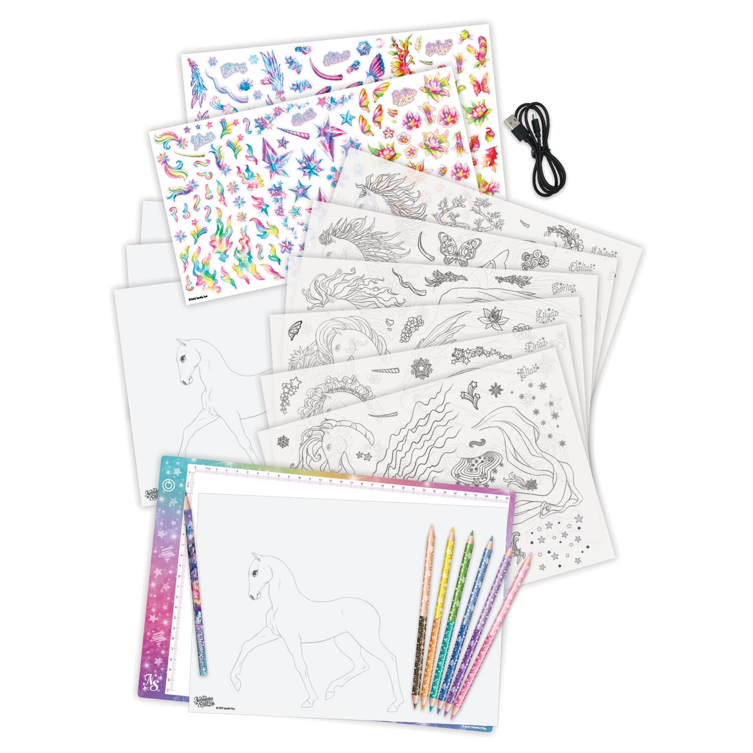 and store. The illumination is perfectly even, super bright and flicker free. Ideal for tracing, calligraphy, designing & drawing. Touch sensor switch design. Turn it on/off and control the brightness easily just by pressing the button until it is just right. Comes with printed tracing sheets, sample pattern pages, 6 double-ended wooden pencils and a USB cable.
