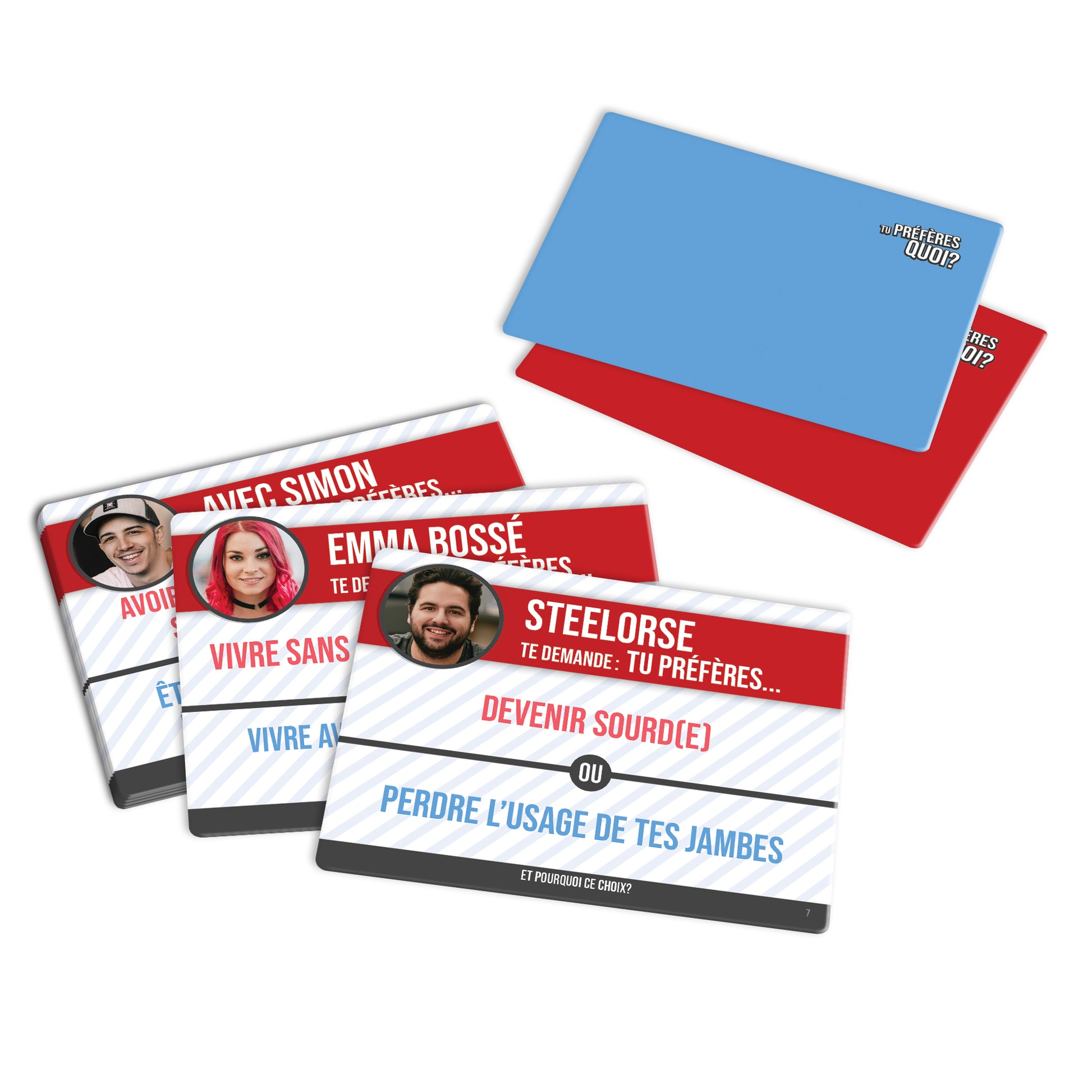 Tu préfères quoi? est un jeu où vous devez faire un choix entre 2 énoncés proposés par un youtubeur et expliquer pourquoi. Les choix sont extrêmement difficiles à faire et permettront de créer de l’ambiance, de la jasette, des questionnements et plus encore durant vos soirées! Le jeu est prêt en seulement quelques secondes et est facile à comprendre pour un maximum de fun et un minimum d’explications! Vous retrouverez plusieurs façons de jouer, et vous pourrez également combiner les cartes de toutes les éditions du jeu Tu préfères quoi? pour augmenter les possibilités et le plaisir.