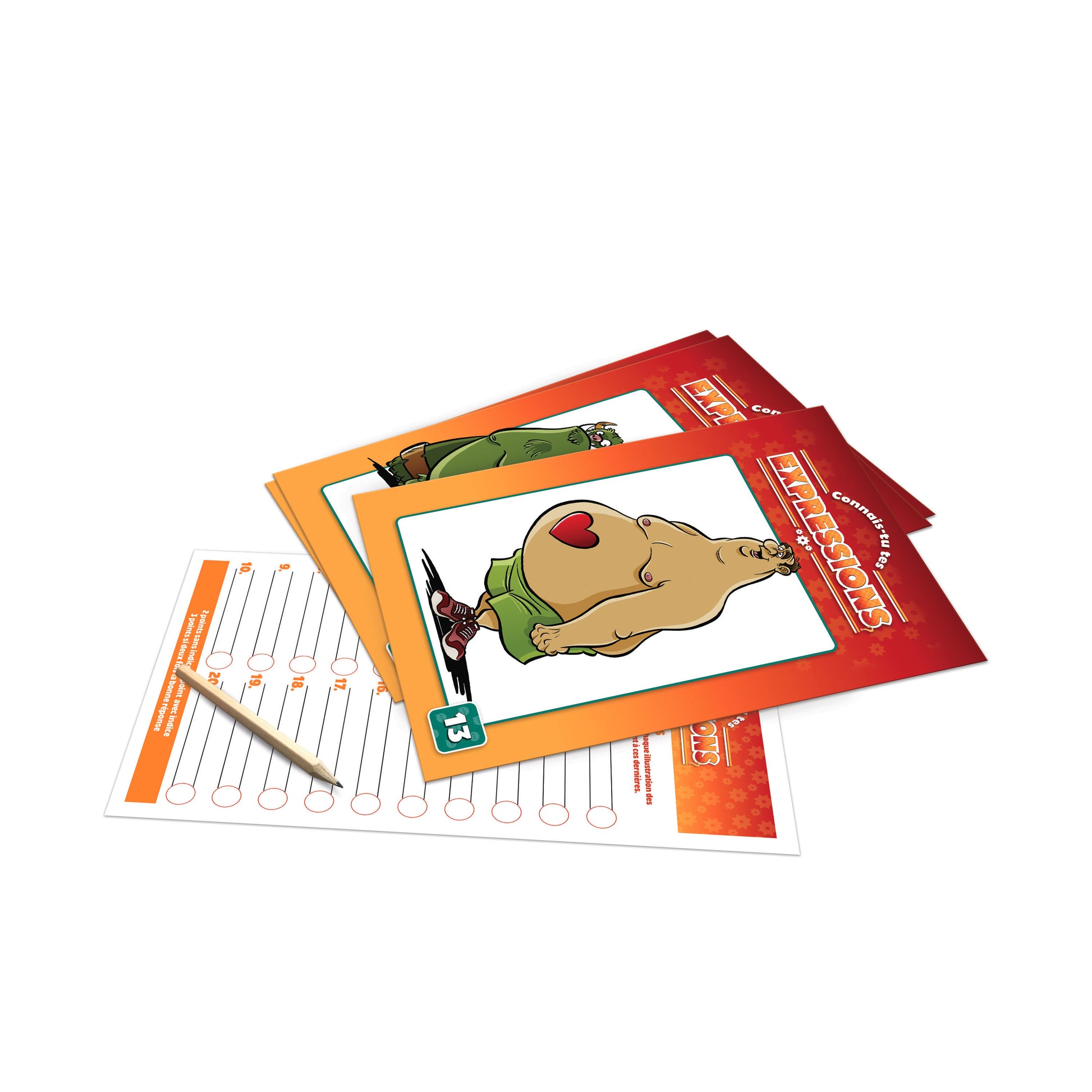 Testez vos connaissances du QUÉBÉCOIS avec ce jeu sur les expressions d’icitte! Trouvez les 20 expressions québécoises à l’aide des définitions et des cartes-images. Tout au long de la soirée, tentez de trouver les bonnes réponses et notez-les sans les montrer aux autres joueurs. À la fin de l’activité, l’animateur interrogera les participants sur les réponses qu’ils auront trouvées et dévoilera les truees réponses! Faites sortir le québécois pure laine en vous et riez de bon cœur des expressions que vous inventerez! Un jeu qui ne prend pas la tête à Papineau, mais un peu quand même!