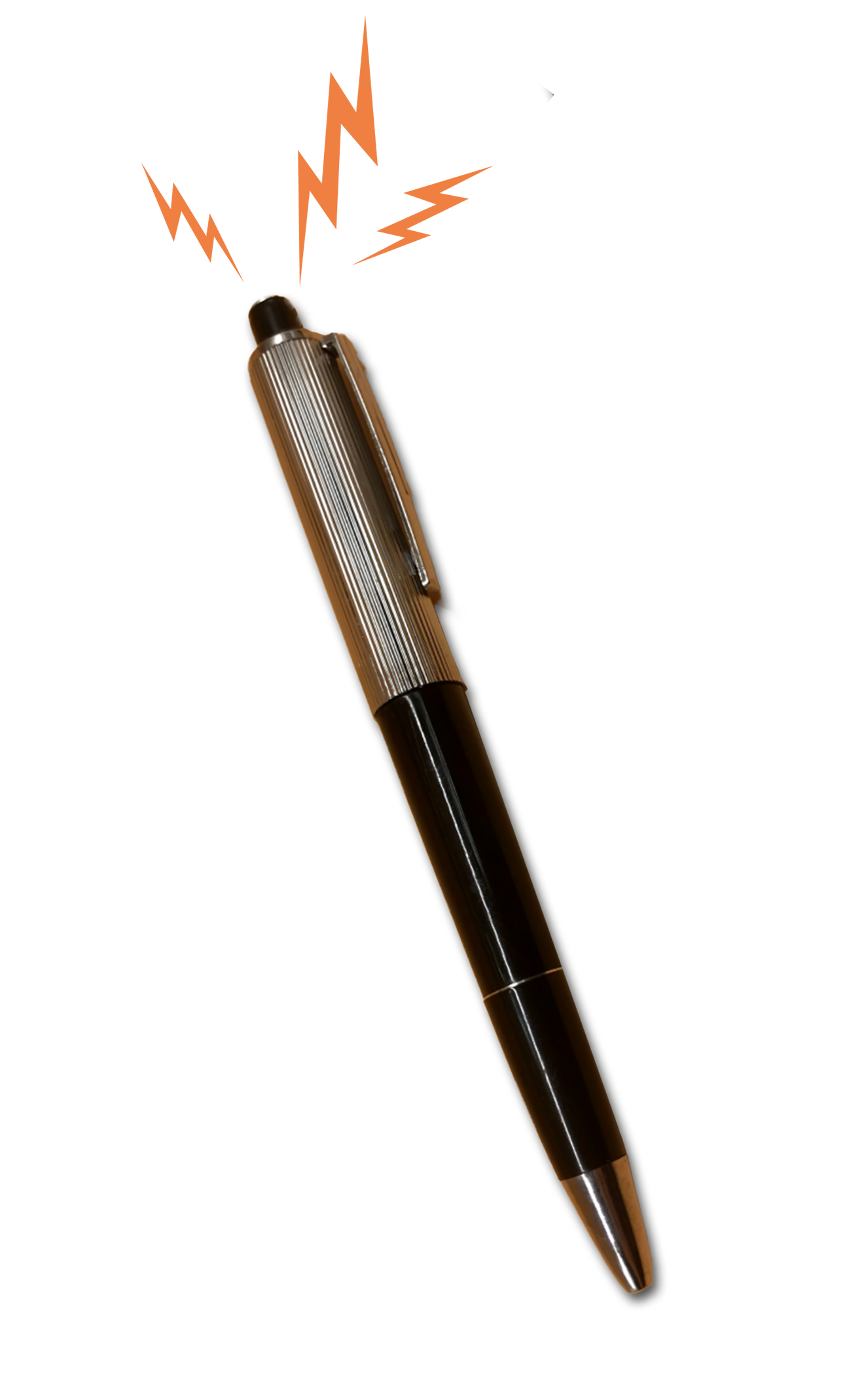 1 stylo choc (item pour les 14 ans et +) Attention! Utilisation interdite sur les personnes ayant une condition cardiaque, les femmes enceintes ou les jeunes enfants.